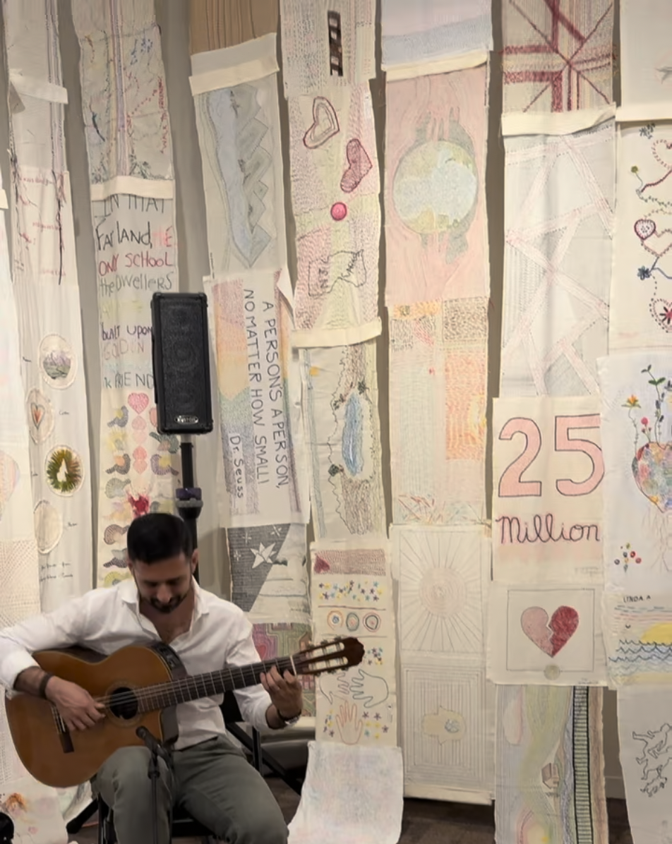25 Million Stitches was initiated and conceived in May 2019 by Guest Curator Jennifer Kim Sohn, a multimedia artist and activist, in Sacramento, CA, to create a community of art activists to visually document the enormity of the number of refugees in the world and to sustain the concern for the refugees in the minds of global citizens.